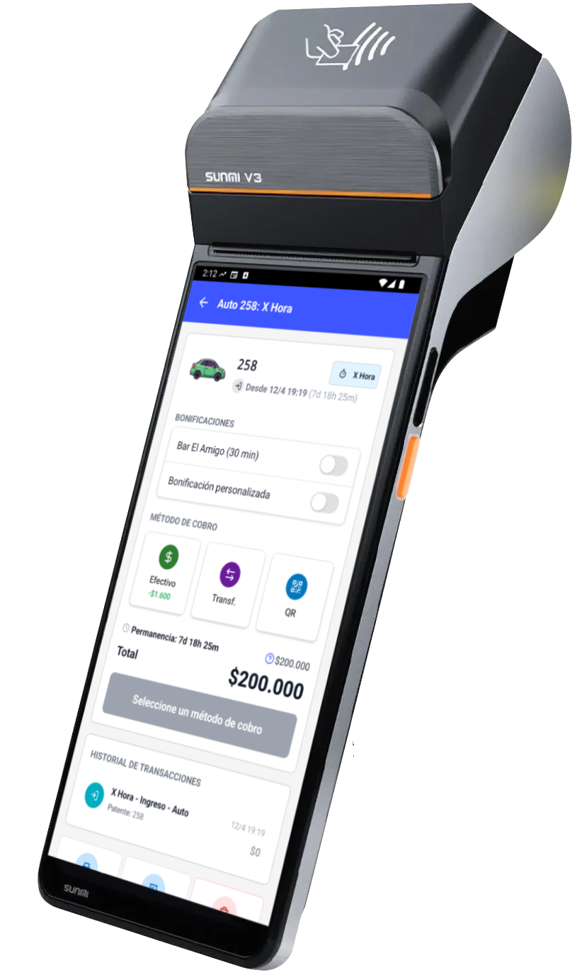 Parqueo es el sistema que imprime tickets con código de barras desde una terminal POS compacta, ordena tu operación, te muestra los datos de tu negocio en tiempo real y te ayuda a tomar decisiones que hacen ganar más plata — pensado para estacionamientos atendidos por sus dueños.